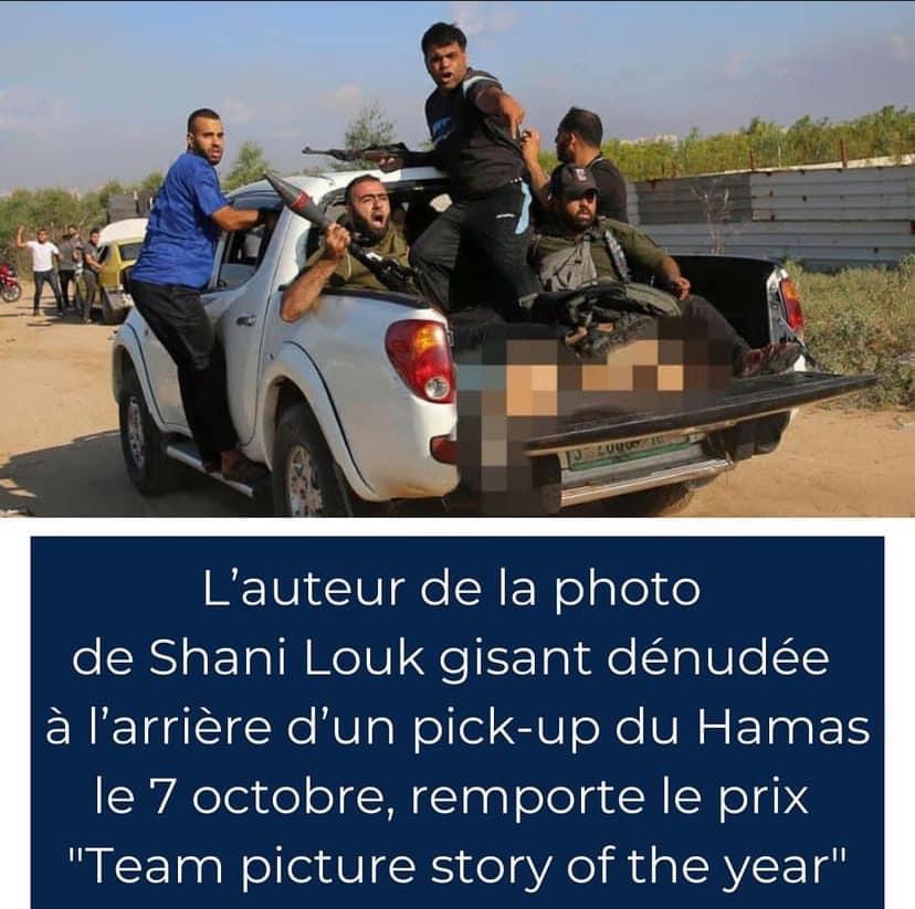 Aujourd’hui, la photo montrant le corps de l’otage assassinée Shani Louk gagne la compétition Photos de guerre Israël-Hamas récompensées par Team Picture Story of the Year, le plus ancien prix de photojournalisme au monde.