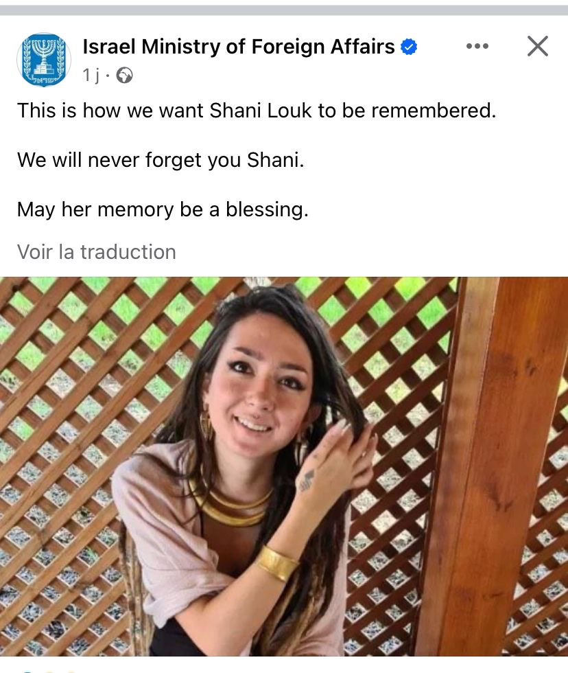 Chère Shani Louk, ainsi que toutes les victimes sorties de ce bas-monde par une bestialité virulente, soyez dans la Paix Divine.