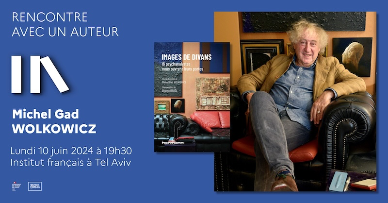 Michel Gad Wolkowicz, psychanalyste, et et Shlomo Israël, photographe, nous parleront de « Images de divans – 16 psychanalystes nous ouvrent leurs portes », Texte de Michel Gad Wolkowicz et photos de Shlomo Israël, publié aux Editions Herman.