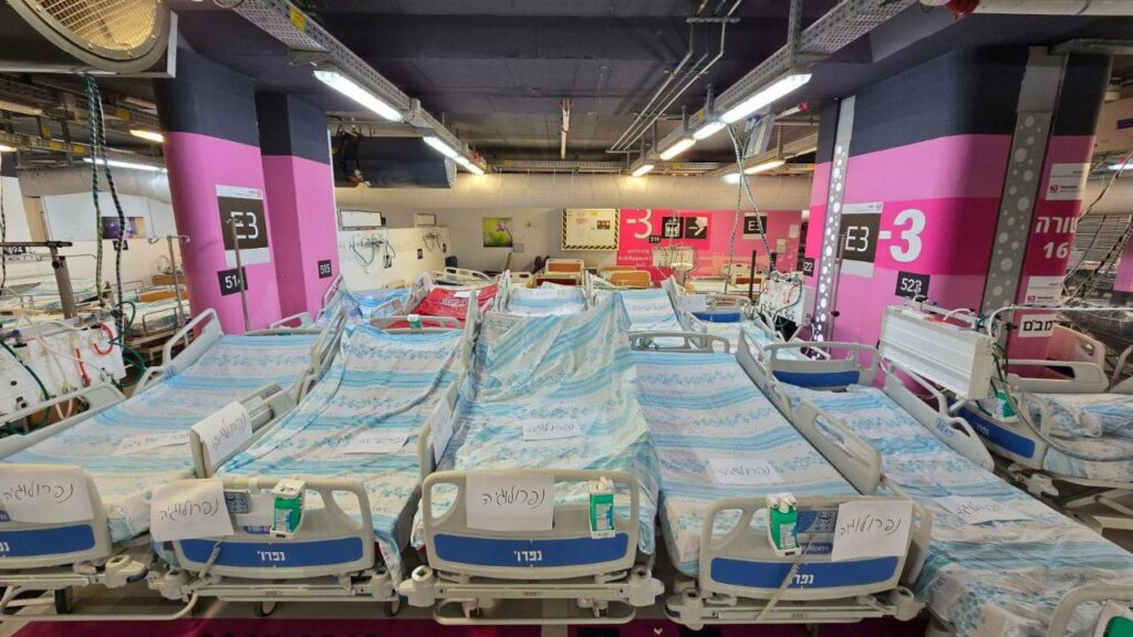 Le parking de l’hôpital Rambam est transformé en préparation de la guerre