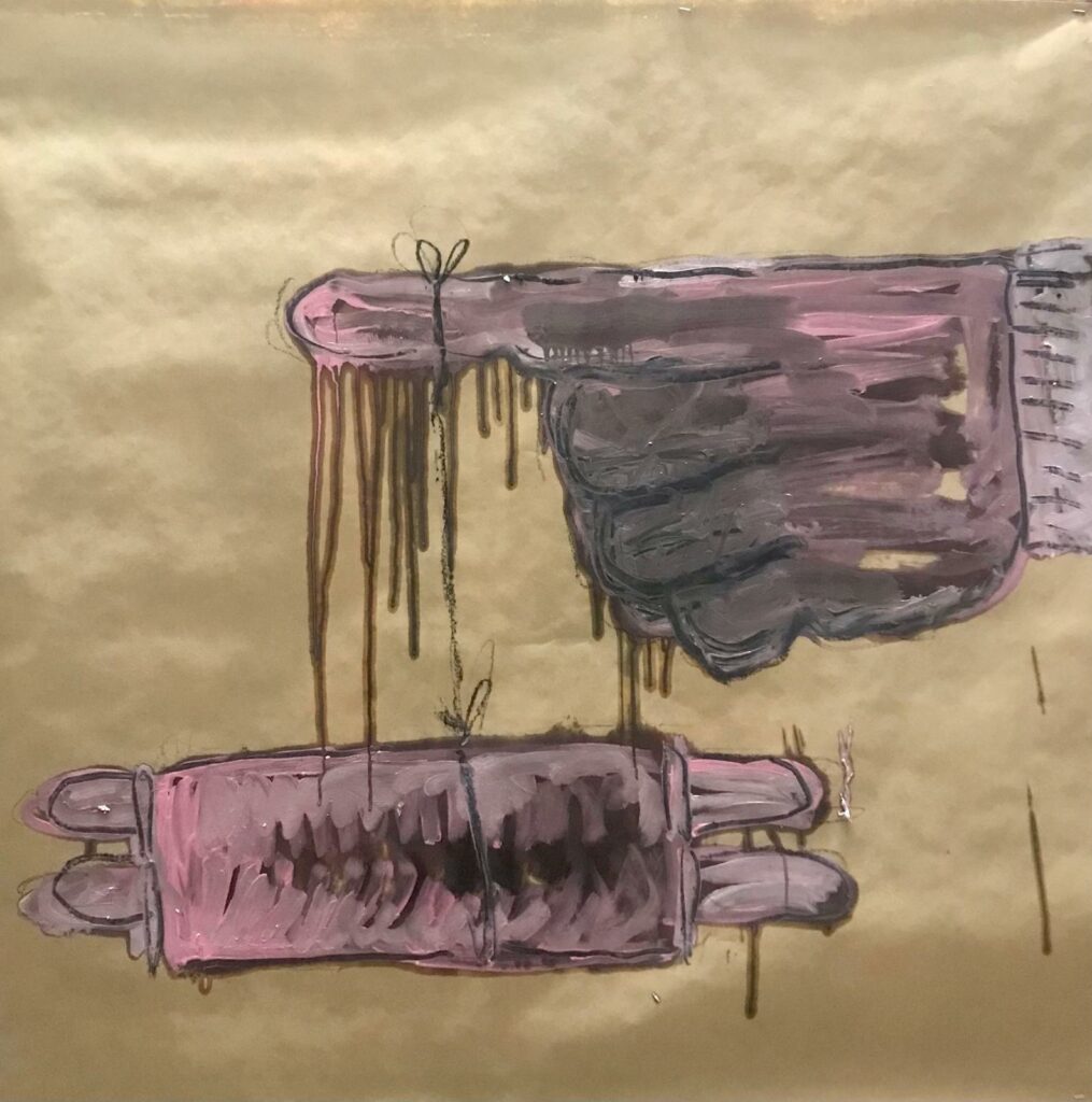 Huile et fusain sur papier recyclé ( 100 x 100 cm )