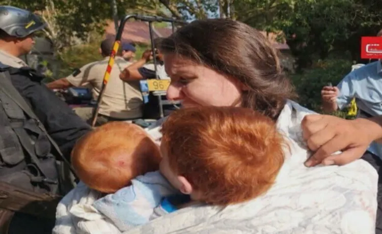Shiri Bibas au moment de son enlèvement avec ses deux enfants, Kfir, 10 mois, et Ariel, 4 ans, le 7 octobre 2023