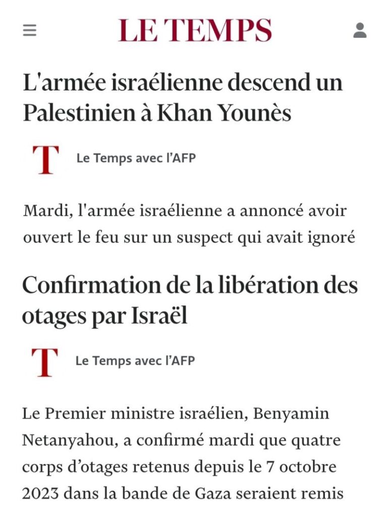 Dans leur vulgarité, ces idéologues qui sont la honte de la profession font dans le discours argotique, en oubliant de mentionner l’identité des otages dont les corps seront rendus à Israël : ces personnes ont un nom, qu’on n’est pas près d’oublier (contrairement à celui de leurs misérables plumes et leurs calomnies):