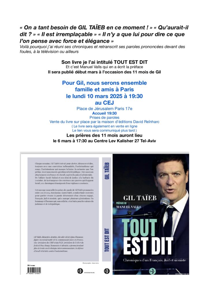 Hommage à Gil Taïeb. Lundi 10 mars au CEJ