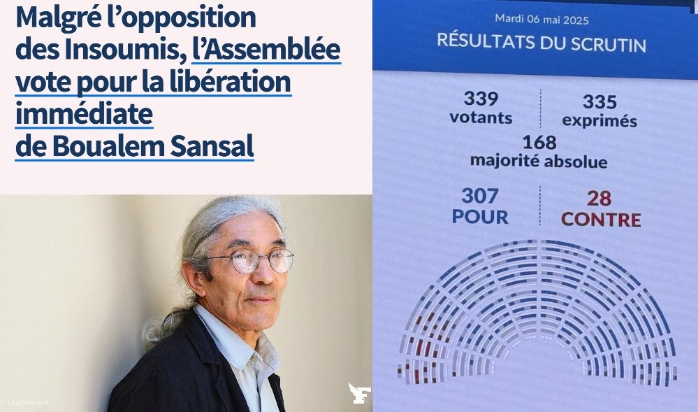 Lors des débats à l’Assemblée nationale, ce mardi 6 mai, 28 députés de la France insoumise ont voté non à l’unanimité contre la proposition de résolution européenne appelant à la libération de l’écrivain franco-algérien Boualem Sansal, emprisonné en Algérie pour « atteinte à l’unité nationale ». Parmi les opposants figure la cheffe de file des députés LFI Mathilde Panot, le député du Val-de-Marne Louis Boyard, le député de Marseille Manuel Bompard, le député du Nord, David Guiraud ou encore le député du Rhône Gabriel Amard, cela faisant dire à Bruno Retailleau que la France insoumise « sombrait une fois de plus dans l’indignité et le déshonneur », alors que le président de l’Union des Droites pour la République (UDR), Eric Ciotti, a tweeté : « Honte aux 28 députés Insoumis qui ont voté contre la libération de Boualem Sansal ! Honte aux communistes qui se sont abstenus ! Lâcheté et déshonneur… » Enfin, de son côté, Jordan Bardella a avancé que LFI « se vautrait toujours plus dans l’abject: Soutenir un régime étranger corrompu, qui utilise l’arme migratoire contre la France et emprisonne un écrivain pour ses idées, peut-on faire plus déshonorant pour un parti politique “français” ? », a-t-il ensuite interrogé.