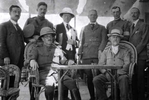 Le président Woodrow Wilson a nommé Henry C. King (à gauche) et Charles R. Crane, assis, pour diriger la Commission King-Crane parrainée par les États-Unis et prise en photo ici à l’hôtel Royal de Beyrouth, en juillet 1919