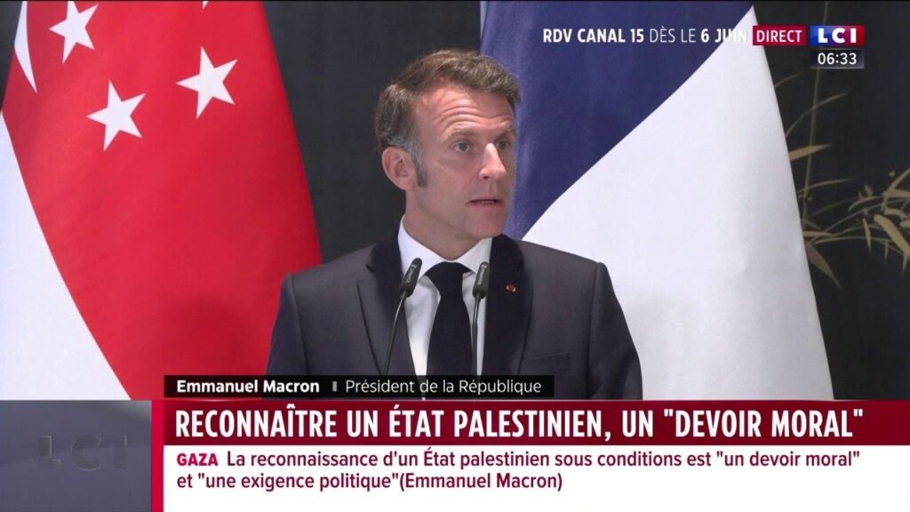Macron « veut » la reconnaissance d’un Etat palestinien dont personne ne sait à qui on pourrait le confier, dont on ne connaît pas les frontières, dont on ne sait pas avec qui on devrait discuter cette reconnaissance, ni pour quelle politique. C’est d’autant plus absurde que la population de Gaza et ses chefs depuis 2005 ont fait la démonstration permanente de leur incapacité à se gouverner eux-mêmes autrement qu’en cultivant la haine antijuive dans la population et en détournant l’aide internationale pour préparer et faire la guerre permanente à Israël, guerre ayant culminé lors de l’attaque ignoble et pogromiste du 7 octobre.