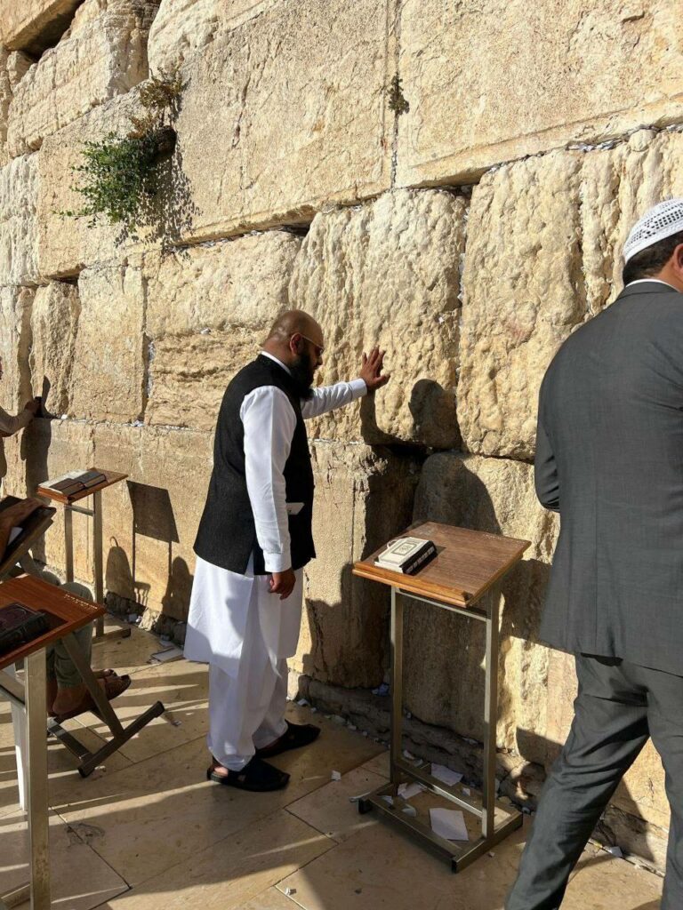 Nur Dari, qui se définit comme un « musulman sioniste », Chercheur britannique sur le terrorisme et né au Pakistan, visite le Mont du Temple et le Kotel avec une épingle pour la libération des otages