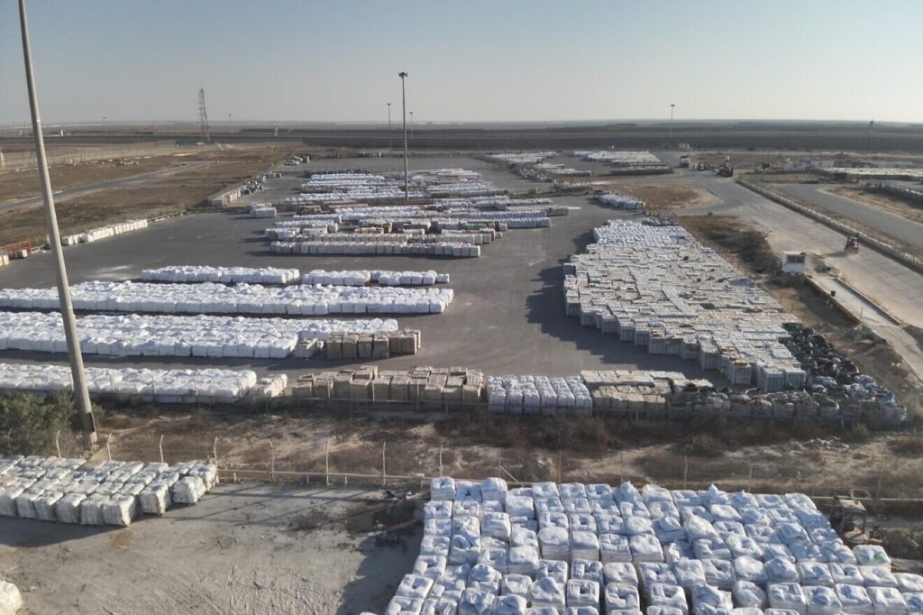 Le COGAT a publié un nombre impressionnant d’images de camions stationnés par centaines côté Gaza au point de passage de Kerem Shalom, à côté d’un nombre tout aussi impressionnant de cartons empilés sur des palettes.