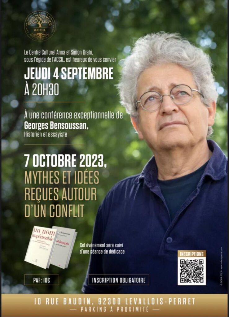 Dans cette conférence exceptionnelle pour l’ACCIL de Levallois, l’historien Georges Bensoussan propose une analyse claire et rigoureuse des représentations qui entourent un conflit au cœur de l’actualité. Il s’attache à déconstruire les mythes, à identifier les idées reçues et à replacer les faits dans leur contexte historique, politique et culturel.