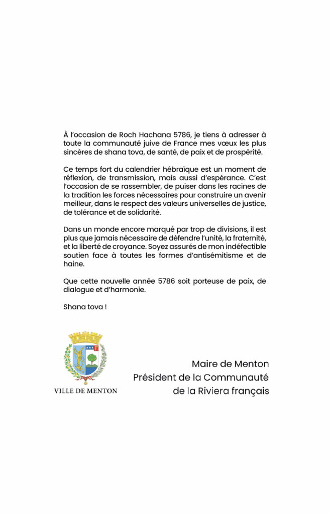 « 5786 : une année douce comme le miel » vous souhaitent vos maires