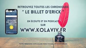 Partenariat Radio Kol Aviv-Tribune juive: Le Billet d’Erick. 16 octobre 2025 23 octobre 2025 Tribune Juive Partenariat Radio Kol Aviv-Tribune juive Le Billet d'Erick Lebahr 0 Le billet d’Érick 191025 https://t.co/2WHaOCPVif— cattan (@sarahcattan_) October 23, 2025 "Le Billet d'Erick"16 octobre 2025Erick LebahrPartenariat Radio Kol Aviv 103.1 et Tribune juiveSuivez-nous et partagez