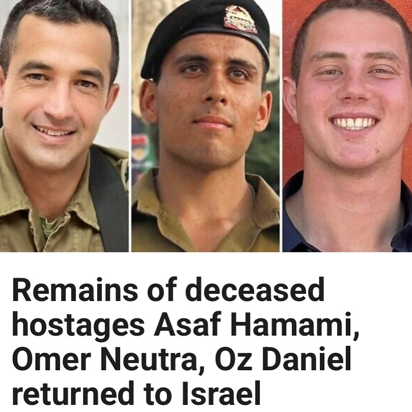 Après la finalisation du processus d’identification par le Centre national de médecine légale en collaboration avec la police israélienne et la rabbinerie militaire, les représentants de Tsahal ont informé les familles des otages le colonel Asaf Hamami Z’L le capitaine Omer Maxim Neutra Z’Let le premier sergent Oz Daniel Z’O que leurs proches ont été rendus pour l’inhumation.