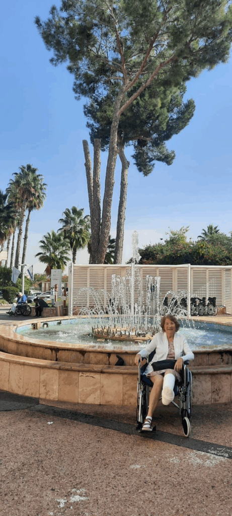 Il faut maintenant organiser le quotidien, il me faut des chaises roulantes pour l’exterieur et l’intérieur, un déambulateur, etc… C’est là qu’intervient Yad Sarah. Organisation humanitaire basée sur le bénévolat et les dons du public, connue de tous et si utile actuellement. Yad Sarah a des stations dans de nombreuses villes en Israël. Je reçois gratuitement tout ce dont j’ai besoin pour une période de trois mois. Pour les déplacements ils ont aussi des voitures à la disposition des malades dans lesquelles la chaise roulante peut entrer. Le conducteur, un bénévole aussi. Pratiquement tous des retraités qui veulent utiliser leur temps devenu libre à aider les autres.