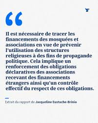 Il est également nécessaire, pour la sénatrice et ses collègues, « de tracer les financements des mosquées et associations en vue de prévenir l’utilisation des structures religieuses à des fins de propagande politique. Cela implique un renforcement des obligations déclaratives des associations recevant des financements étrangers ainsi qu’un contrôle effectif du respect de ces obligations.