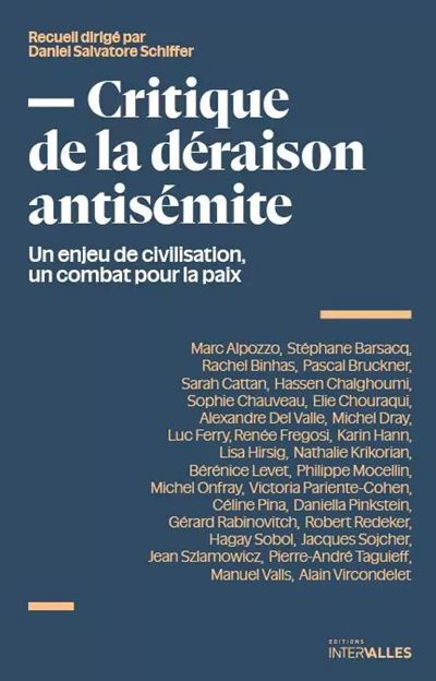 Dans un ouvrage analytique décapant paru aux éditions Intervalles, « 30 figures de premier plan qui ont en commun une extraordinaire lucidité » proposent, sous la direction de Daniel Salvatore Schiffer, philosophe et écrivain, une Critique de la déraison antisémite[1] appelant à revisiter la philosophie humaniste et universaliste des Lumières, afin d’éclairer les consciences et contrer l’offensive islamiste autant qu’islamo-gauchiste, de ce nouvel antisémitisme qui renait dans le monde occidental et singulièrement en France.