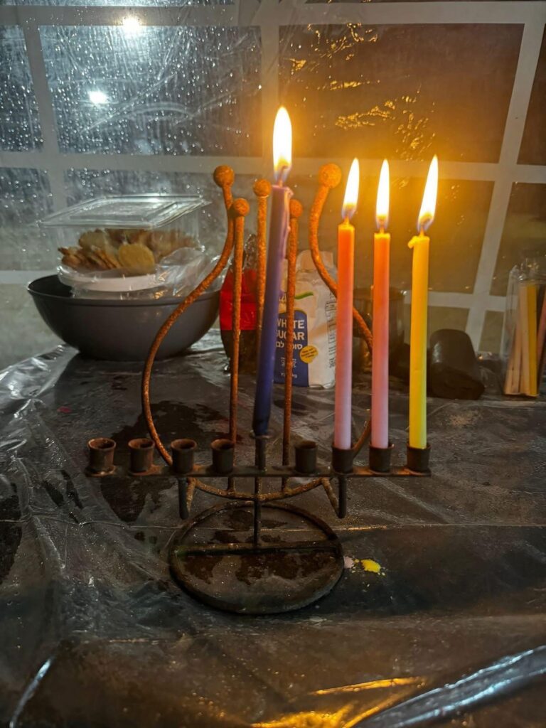 Dana, la seule survivante de la famille, trouva ce chandelier brûlé dans les ruines de la maison et le confia aux soldats à Gaza qui l’allumèrent, leur rappelant ainsi que les ténèbres ne vaincront jamais la lumière.