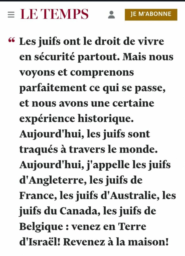 Le Temps avec l’ATS: « Gideon Saar appelle les juifs à s’installer en Israël