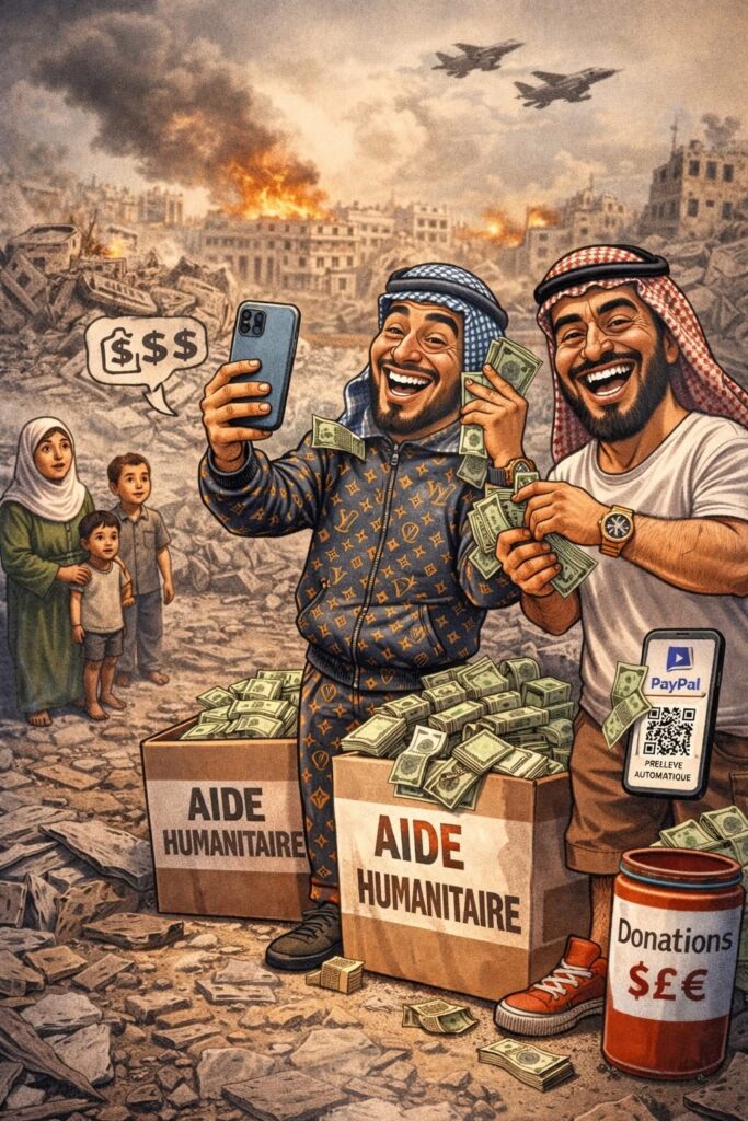 Mais ne soyons pas injustes : le détournement de fonds, c’est une grande tradition locale et internationale. On a vu ça en Syrie, en au Liban, en Afghanistan… la planète carbure à la générosité et certains à la commission. À Gaza, on innove : on a remplacé l’ONG par l’influenceur, plus moderne, plus photogénique, moins contrôlé.