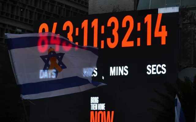 Installée sur la place après le pogrom perpétré par le Hamas le 7 octobre 2023, elle est devenue l’un des symboles les plus reconnaissables de la lutte des familles d’otages, comptabilisant les jours, heures, minutes et secondes écoulés depuis leur enlèvement.