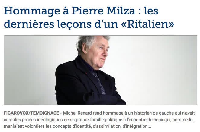 J’ai eu le plaisir, par exemple, de rendre hommage à l’historien Pierre Milza, en mars 2018 : « les dernières leçons d’un Ritalien ».