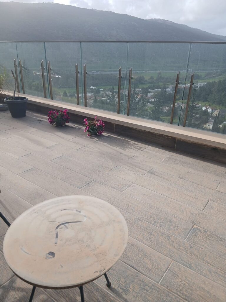 Rien n’échappe à cette poussière dorée. Surtout pas nos poumons. Février ? Hiver ? On s’en fiche, ce n’est pas les saisons qui vont nous dicter leur tyrannie. Ici c’est le Sirocco, Hamsin venu du Sahara, via l’Egypte et le Sinaï, jusqu’aux fauteuils roses de votre serviteur (serviteuse ?) sur sa terrasse, sur sa colline sur la montagne.