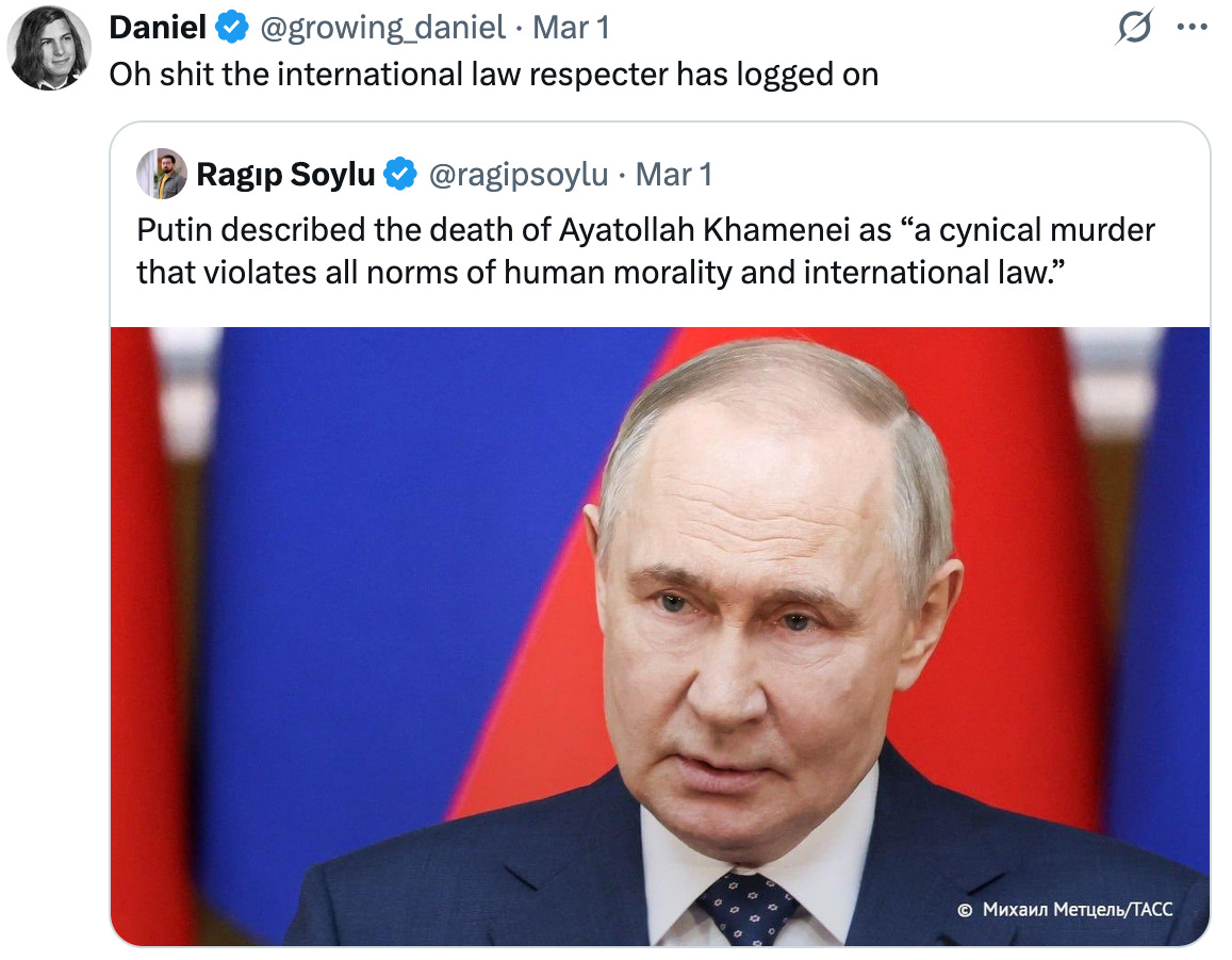 But back to Iran this morning. As the regime continues to seek its replacement(s, multiple) for Supreme Leader, Israel majestically bombed the meeting. In one fell swoop, 88 members of the council were eliminated while casting votes to choose the next Ayatollah. Perhaps they should move the next one to Zoom?
