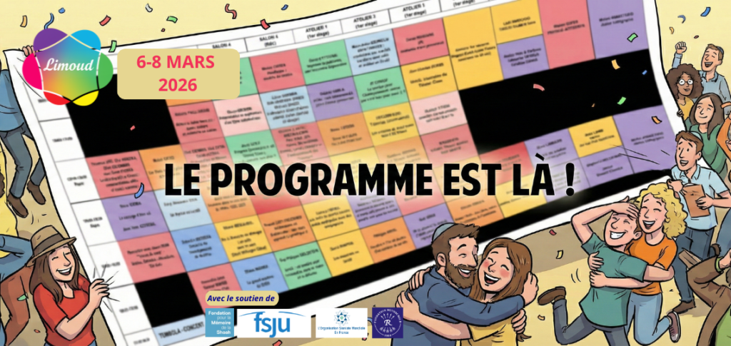 Le festival Limoud revient en force en région parisienne du 6 au 8 mars 2026. Cette année, on plonge au cœur d’un thème plus que jamais essentiel : ✨ « Tikoun Olam : Réparer le monde, hier, aujourd’hui et demain » ✨ Et embarquement immédiat pour une découverte fascinante : 🏝️ « Les Juifs des îles » 🏝️(focus pays) – 3 journées complètes de fête et de réflexion – Près de 150 conférences, ateliers et tables rondes – Des activités pour TOUTES les sensibilités et TOUS les âges