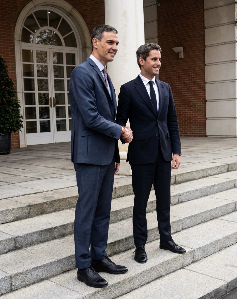 La photo circule. Gabriel Attal sourit. Il serre la main de Pedro Sánchez.