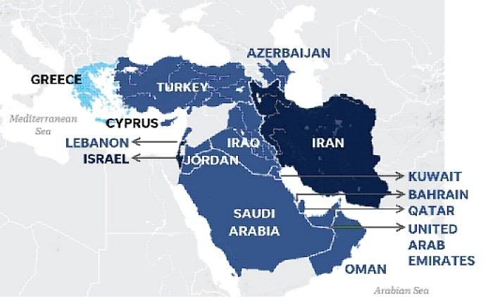 Ces pays sont les Emirats Arabes Unis, Bahreïn, le Koweït et le Kurdistan irakien.