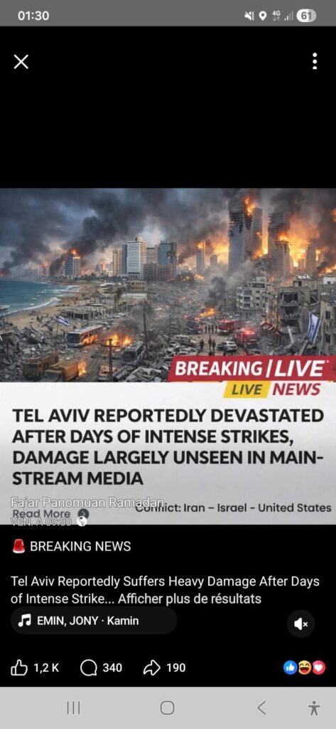 Fait surprenant : dans certaines vidéos montrant les ruines du centre de Tel-Aviv, on entend clairement des conversations en arabe uniquement.