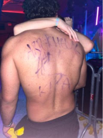 Il se baigne torse nu avec cette inscription sur son dos : « ARRACHEUR DE KIPA » voir ci-dessous.