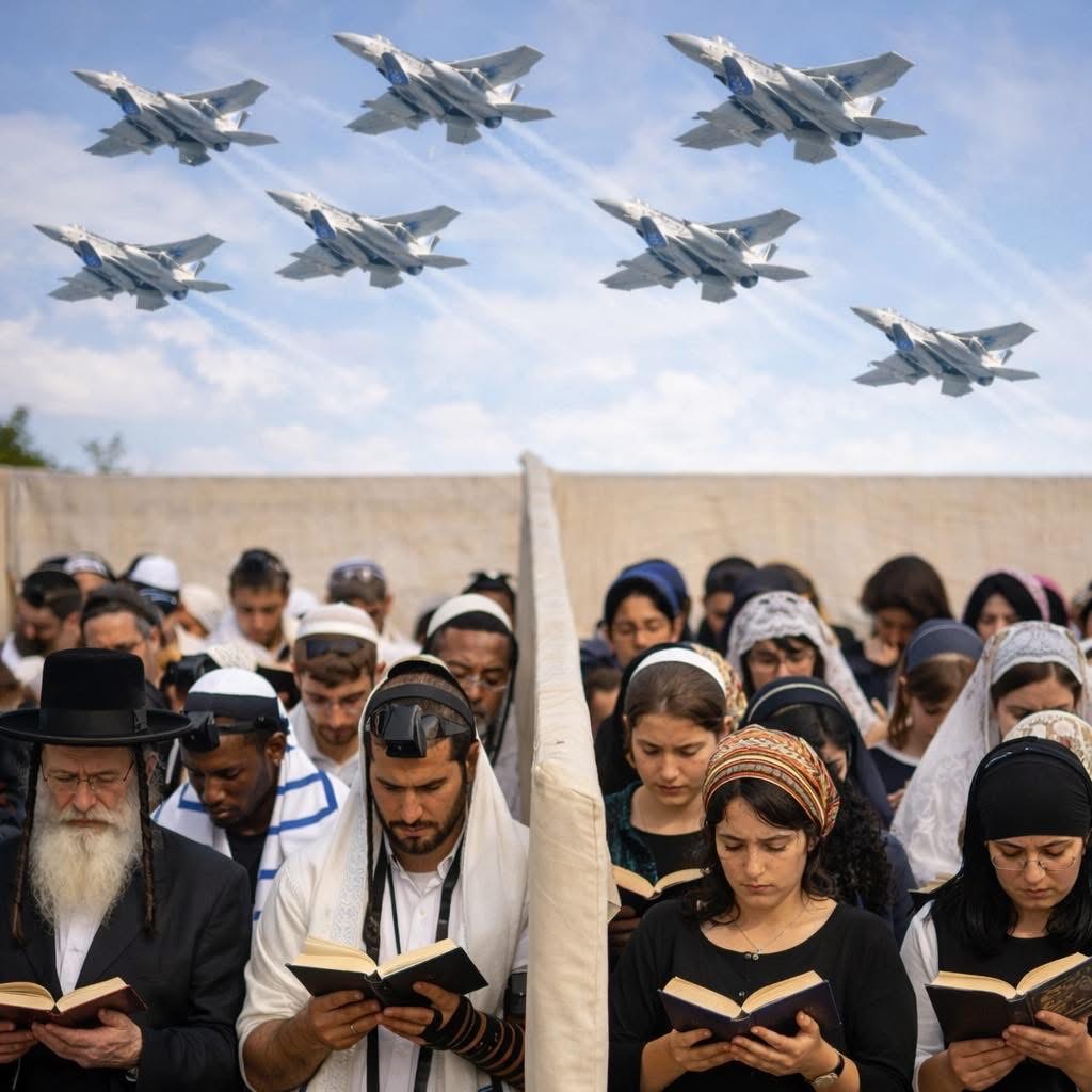 Praying to Hashem with the glorious sound of Israeli jets being flown by Israeli pilots heading to a hostile country thousands of kilometers away that chose to mess with the Jews truly is a magnificent experience.