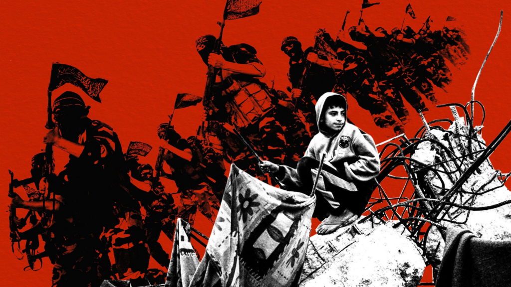 « This is a Western literary genre with its own rules, tropes, and goals », writes Matti Friedman. (Illustration by The Free Press; images via Getty)