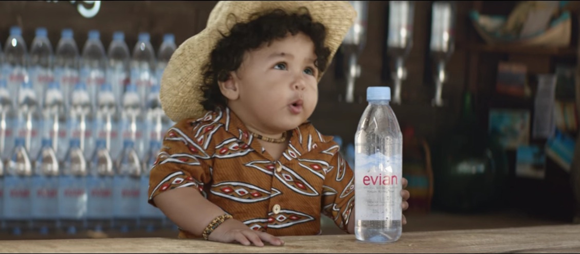 Evian, l’eau des biberons, des nourrissons et des enfants. Le symbole de la pureté , étiquette rose et dessin de montagnes, les Alpes, qui filtrent […]