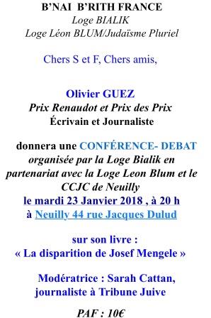 Ecrivain, scénariste, journaliste au Point, Olivier Guez, dont le roman La Disparition de Josef Mengele a reçu le prix Renaudot, donnera une conférence le 23 janvier dans […]