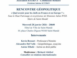 « Quel avenir pour les Juifs en France et en Europe? » Rencontre géopolitique organisée par Sabrina Scetbon, Présidente de l’Association Hatikva