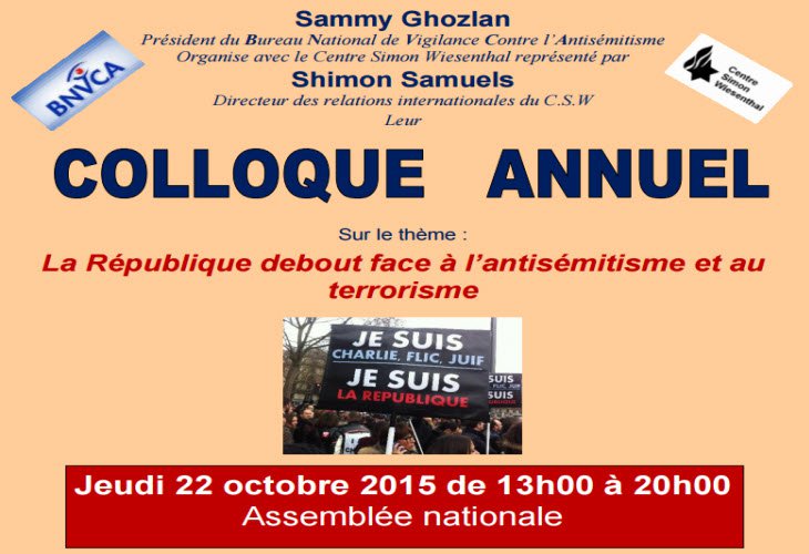 Le Bureau National de Vigilance Contre l’Antisémitisme (BNVCA), présidé par Sammy Ghozlan, et le Centre Simon Wiesenthal, représenté par Shimon Samuels, co-organisaient un colloque à […]